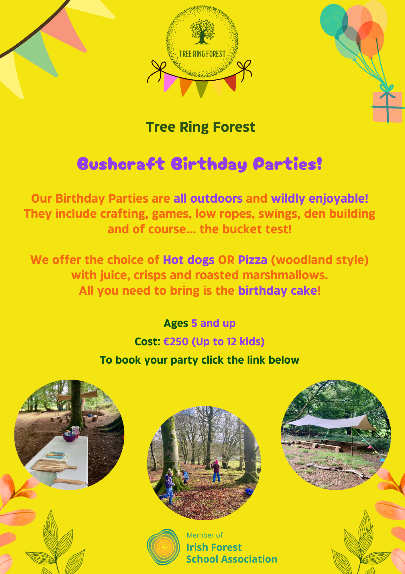 As parents, we have done our time in the play centres of Ireland, watching children and chicken nuggets bounce off the walls! But no more! Now we do parties in the woods…